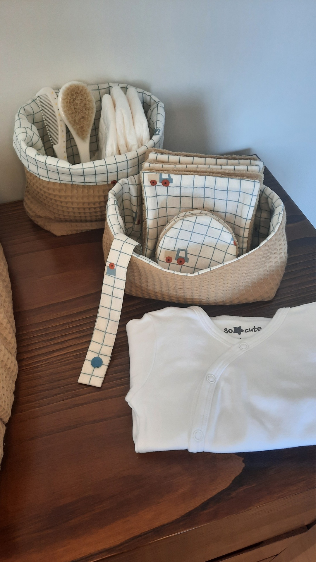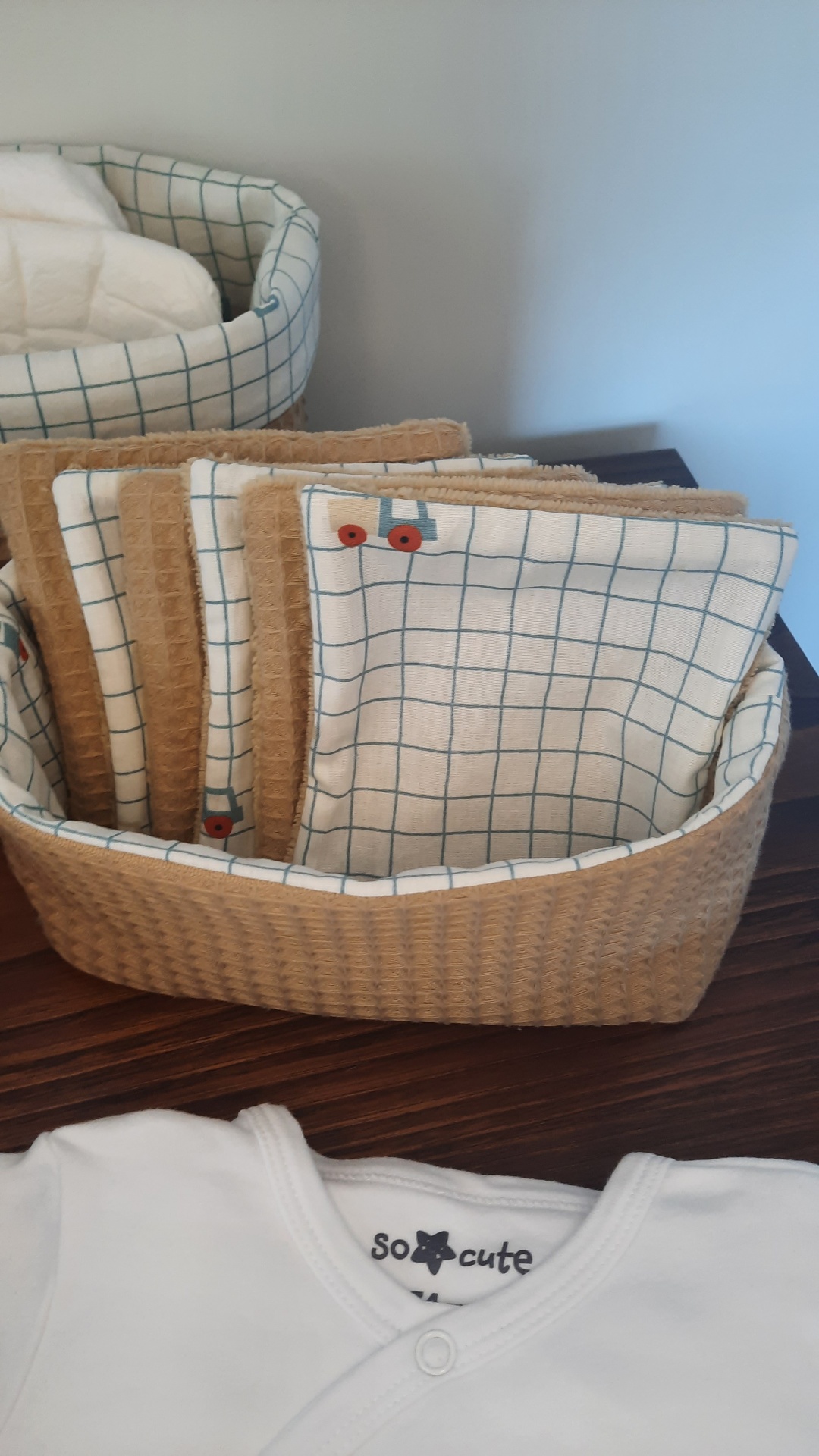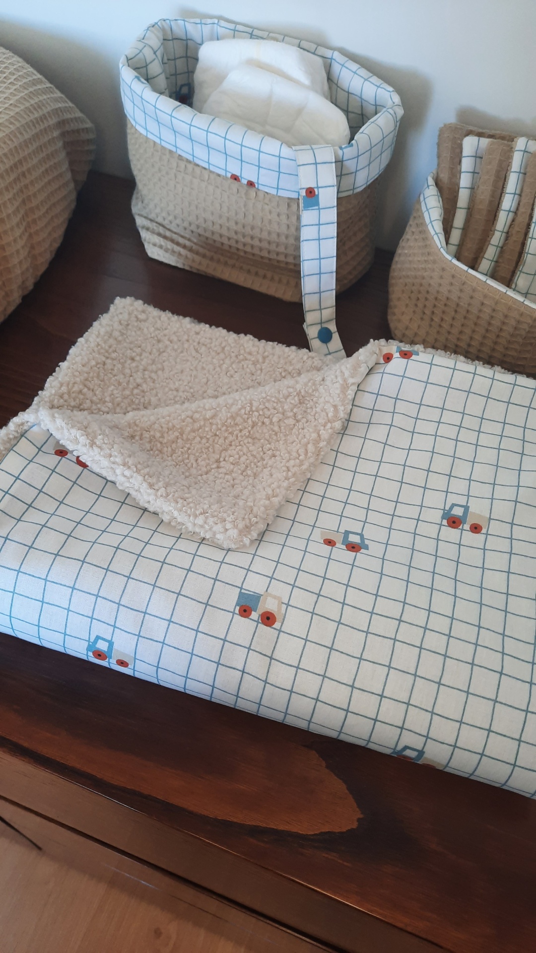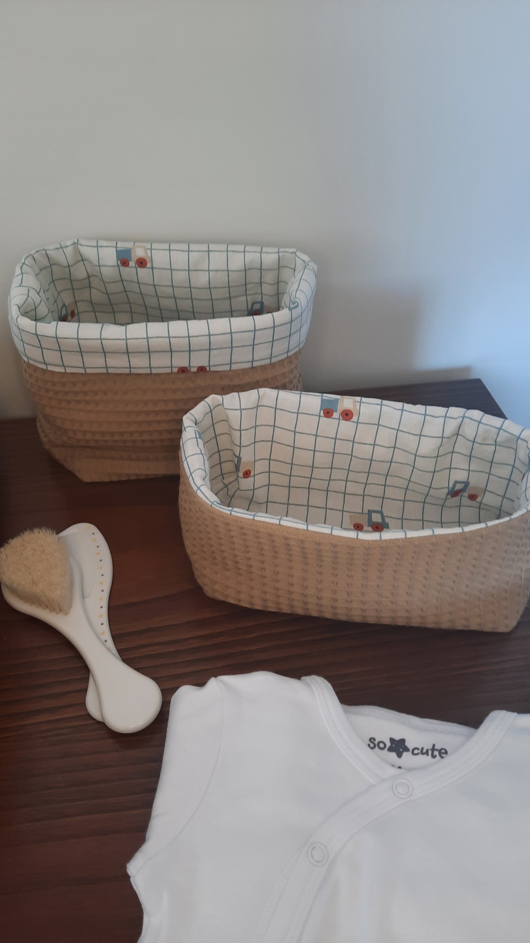 Conjunto de 2 cestos de arrumação para o quarto do seu bebé.