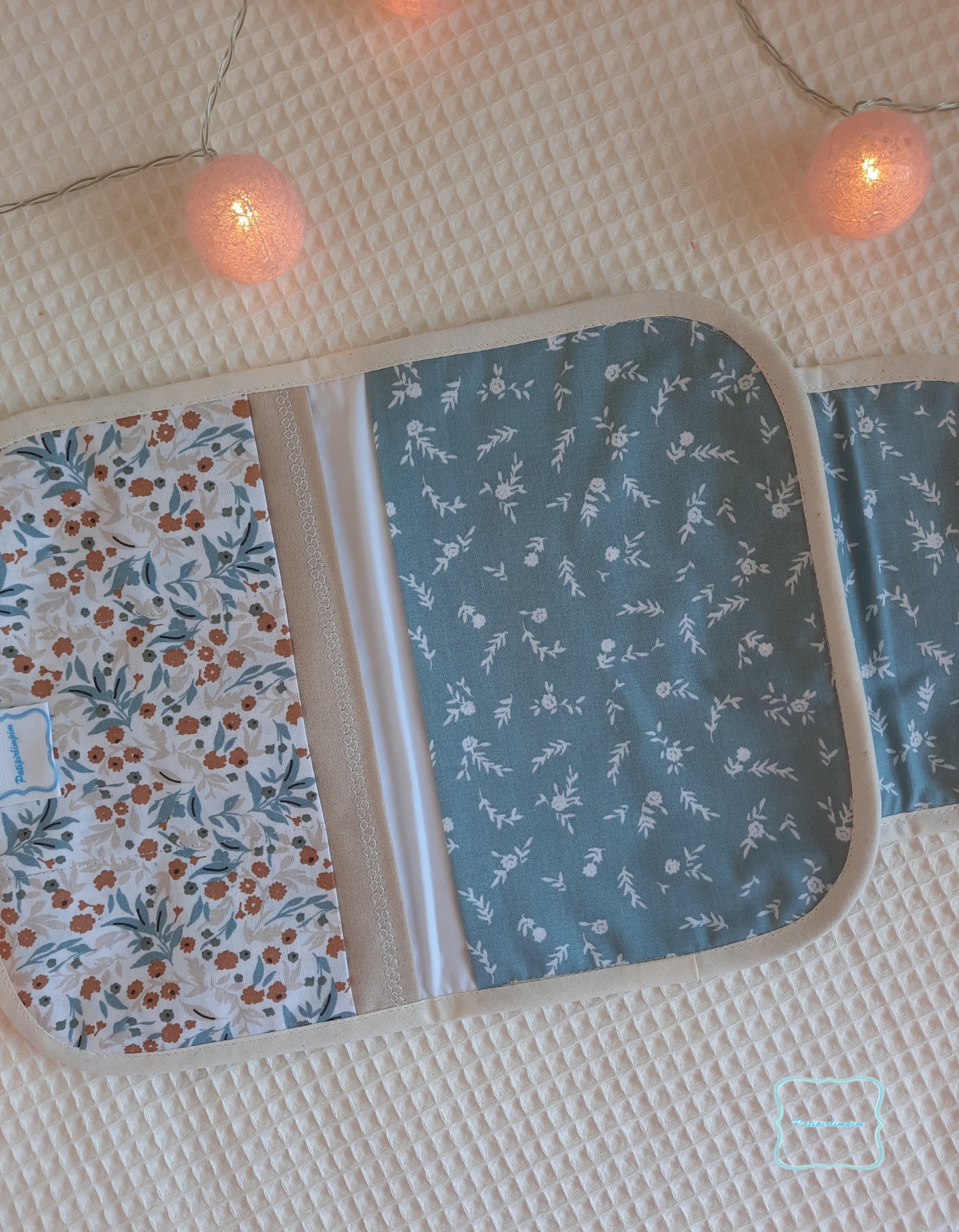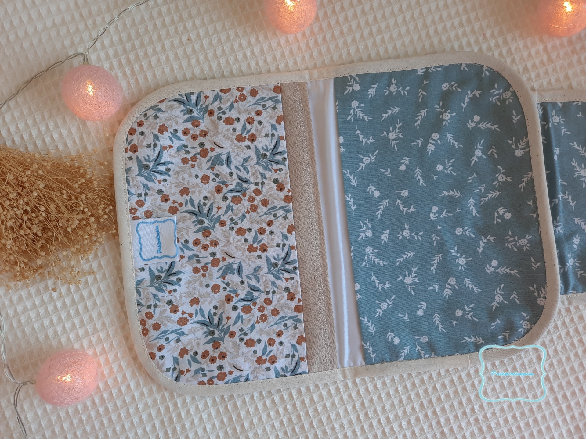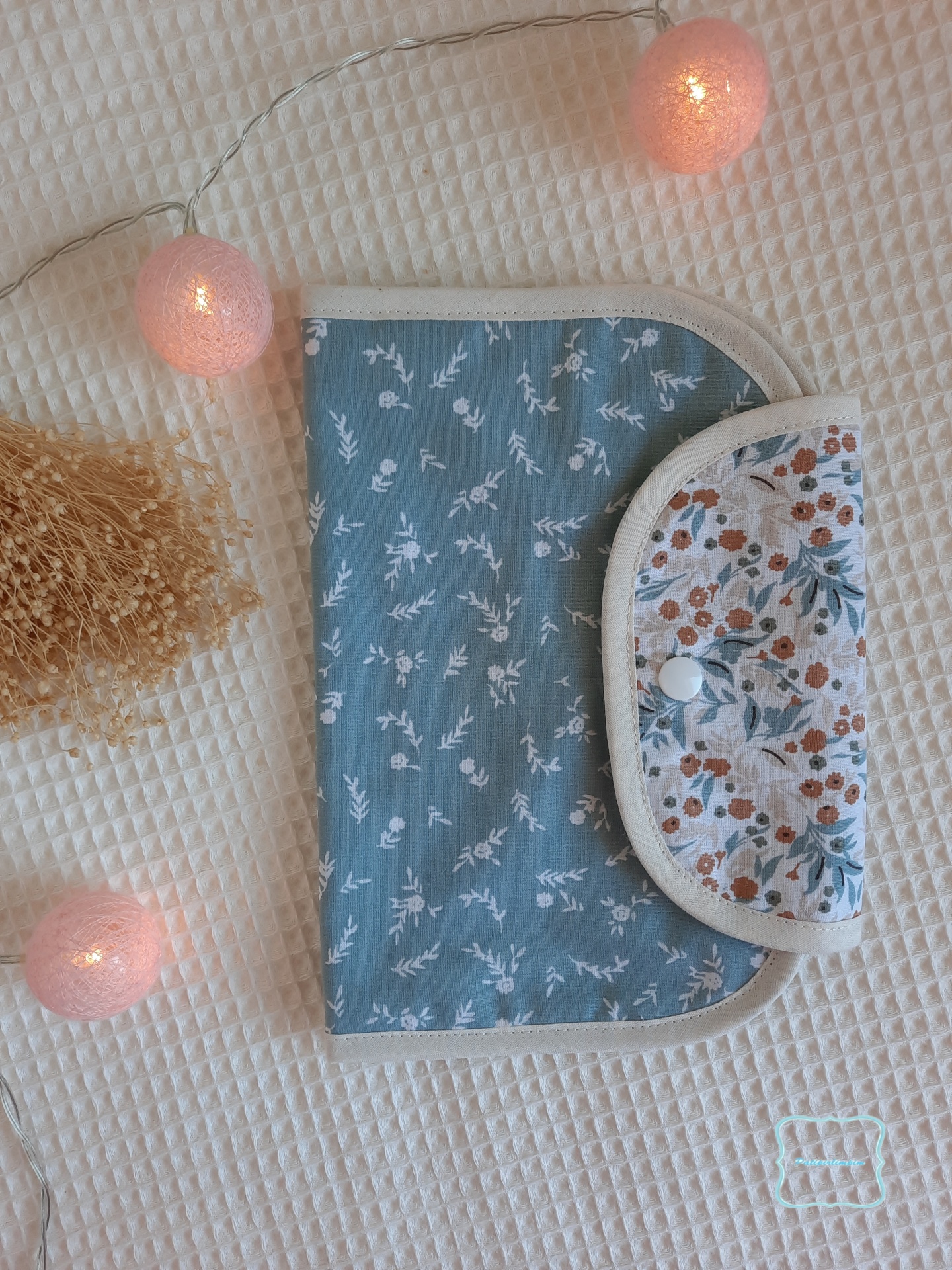 Porta-documentos em tecido de algodão.