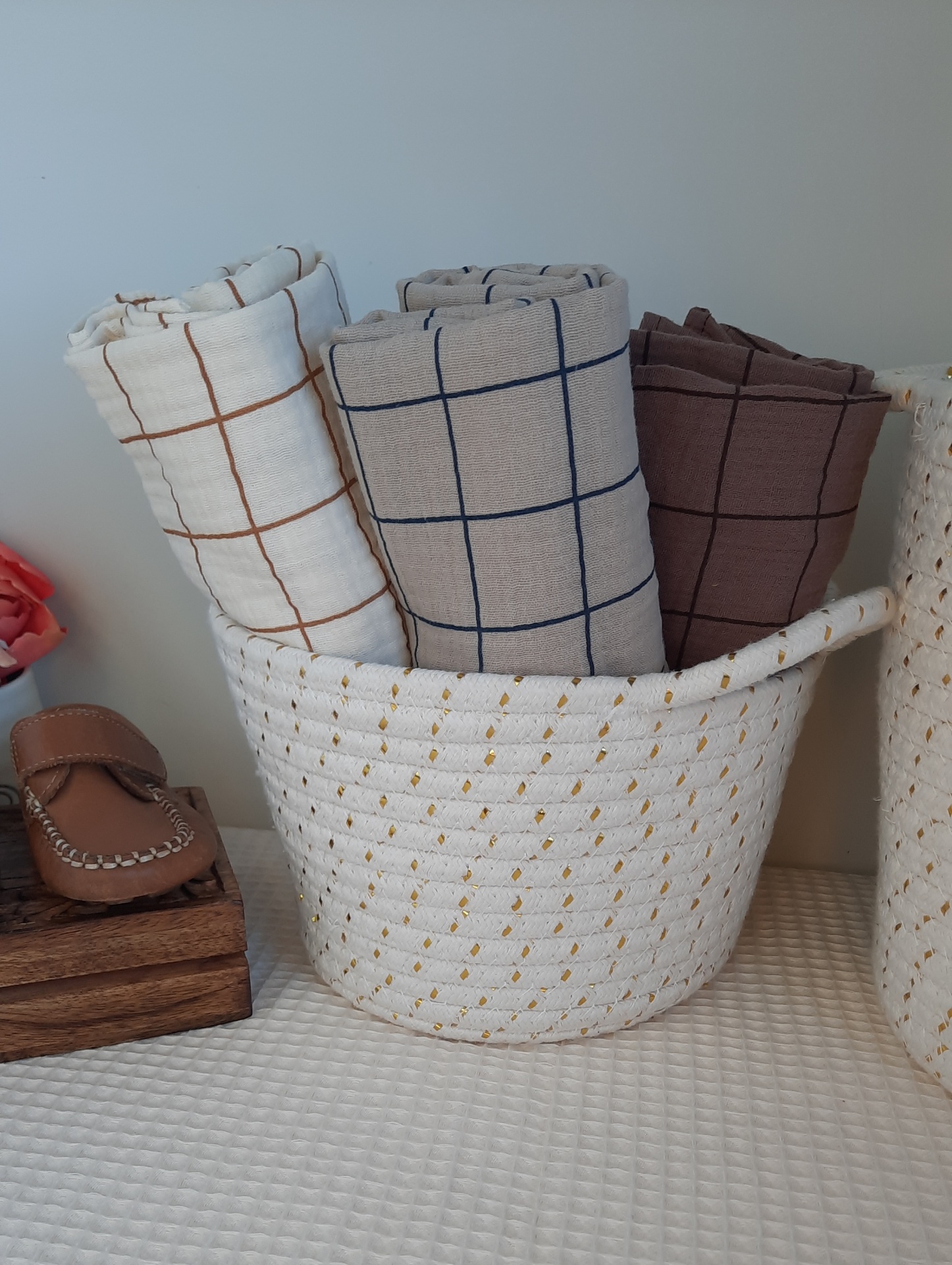 As fraldas são indispensáveis no enxoval do bebé pela sua versatilidade (mantinha, doudou, toalha, ao ombro para encostar o bebé, limpar baba ...)