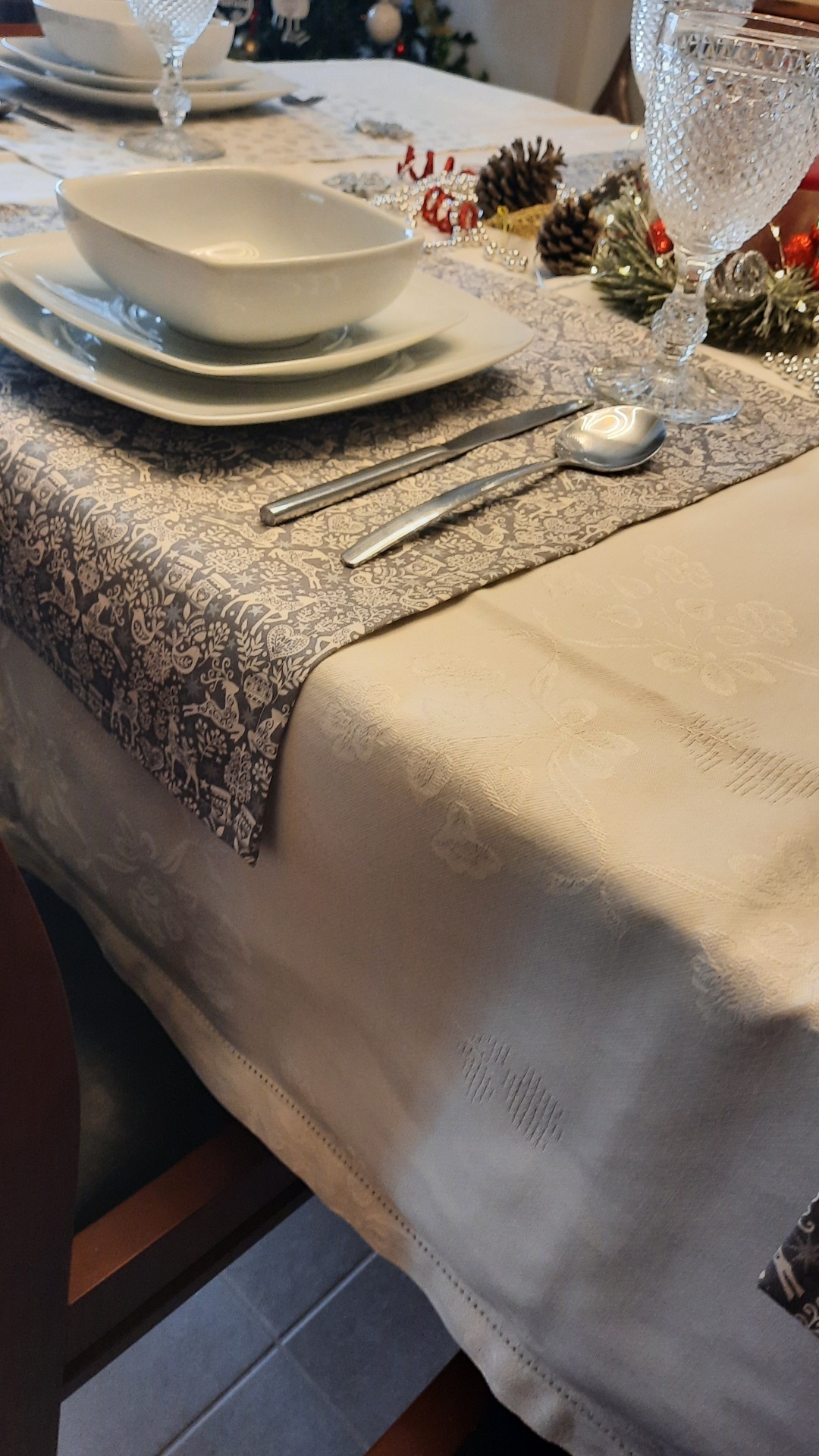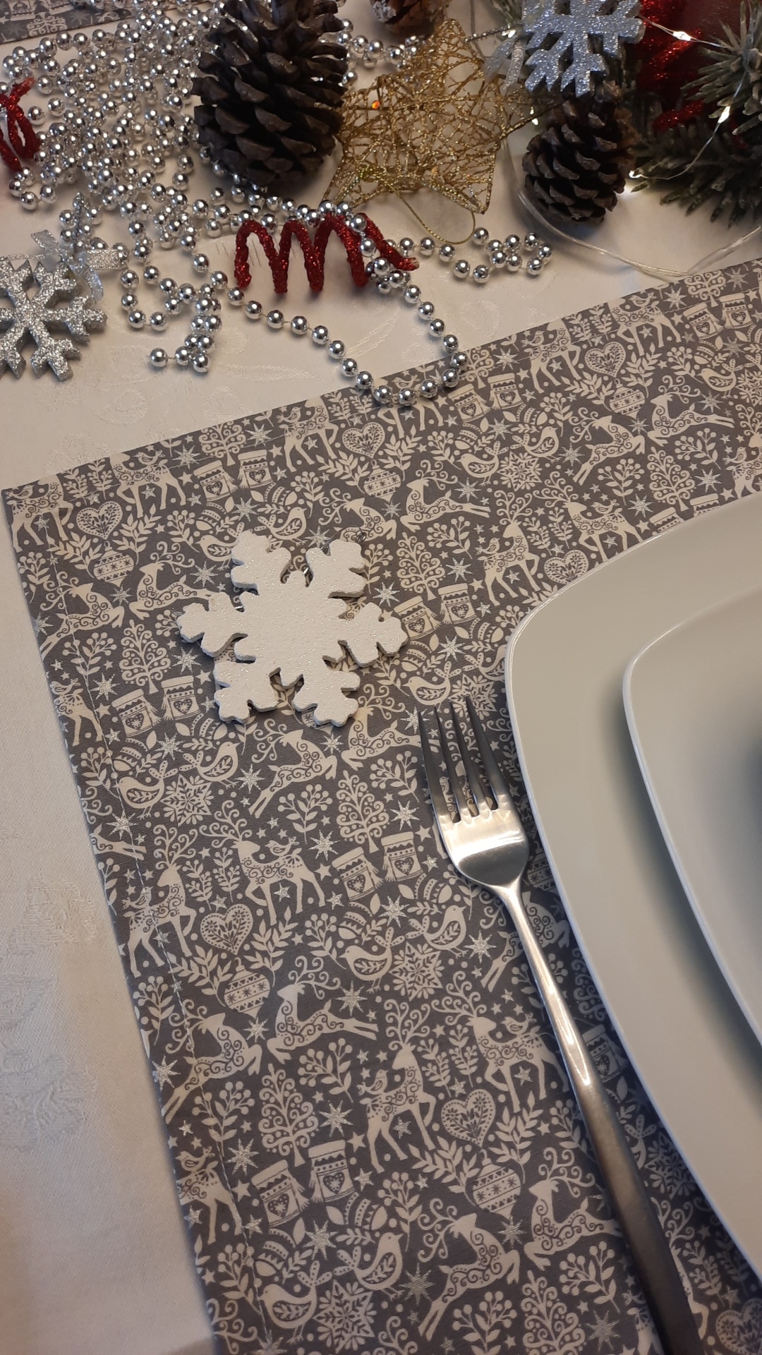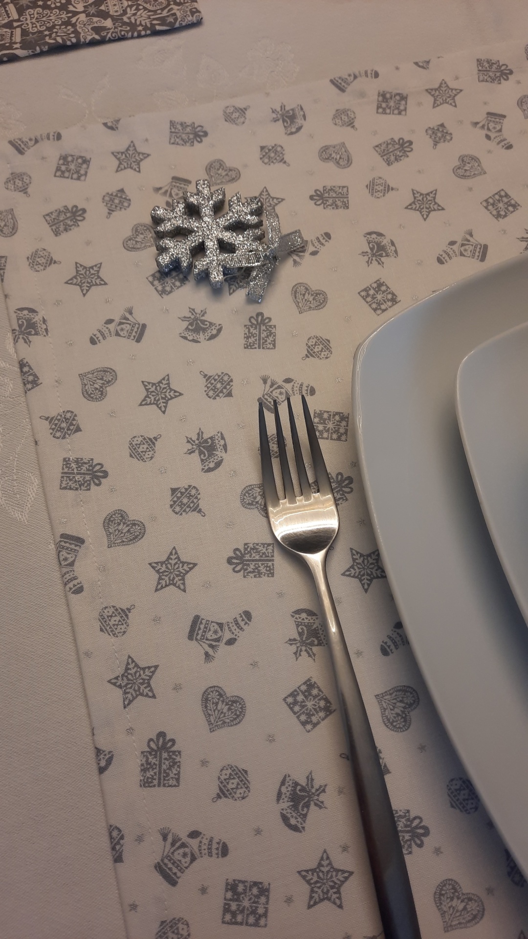Individuais em tecido de alta qualidade, cinzento, branco pérola e prateado.