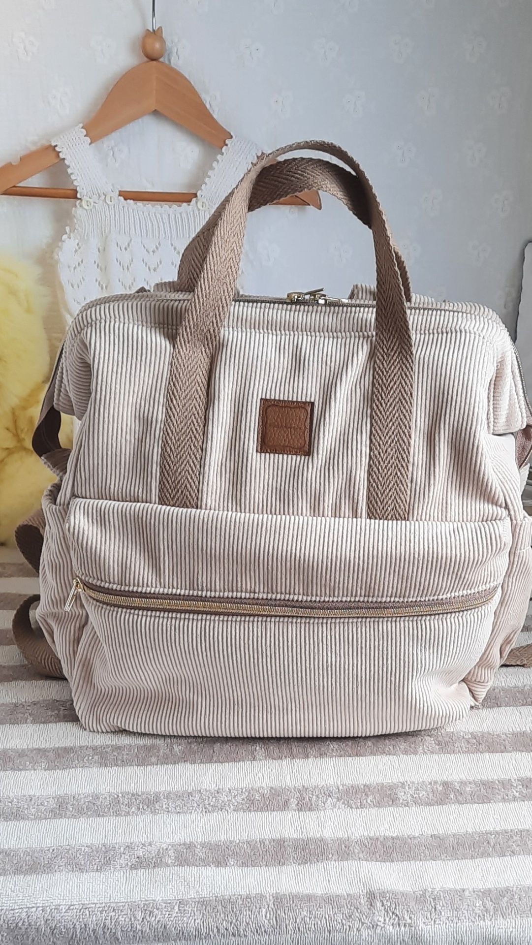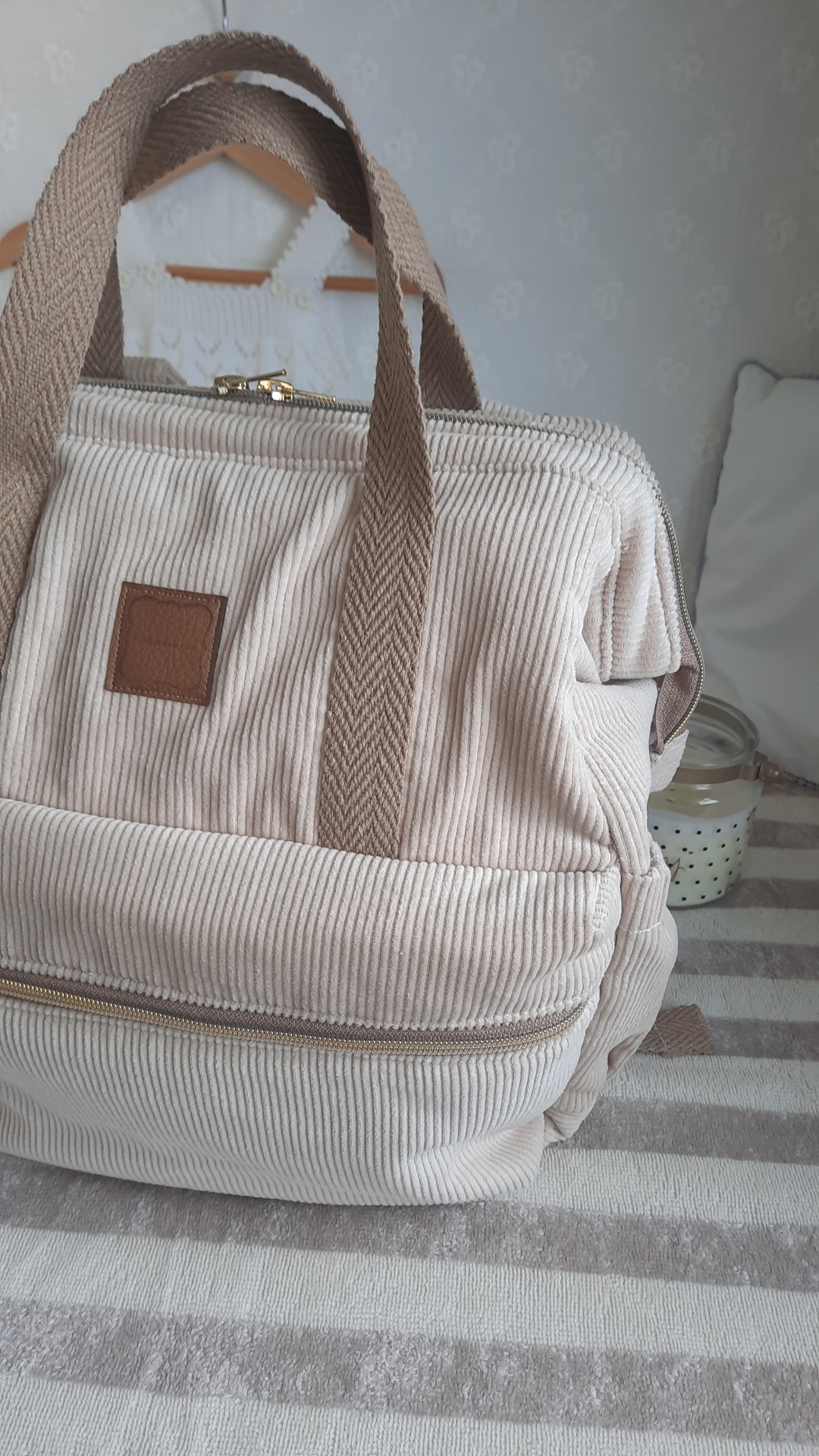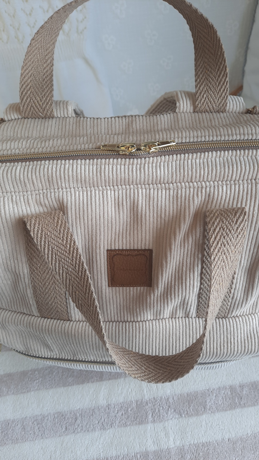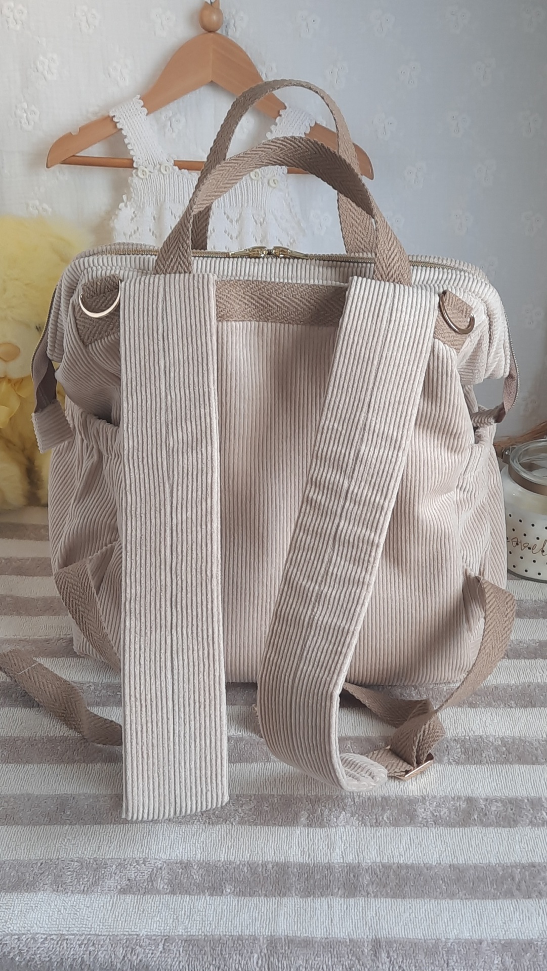 2 pegas de mão, alças reguláveis e pode pendurar no carrinho de bebé.