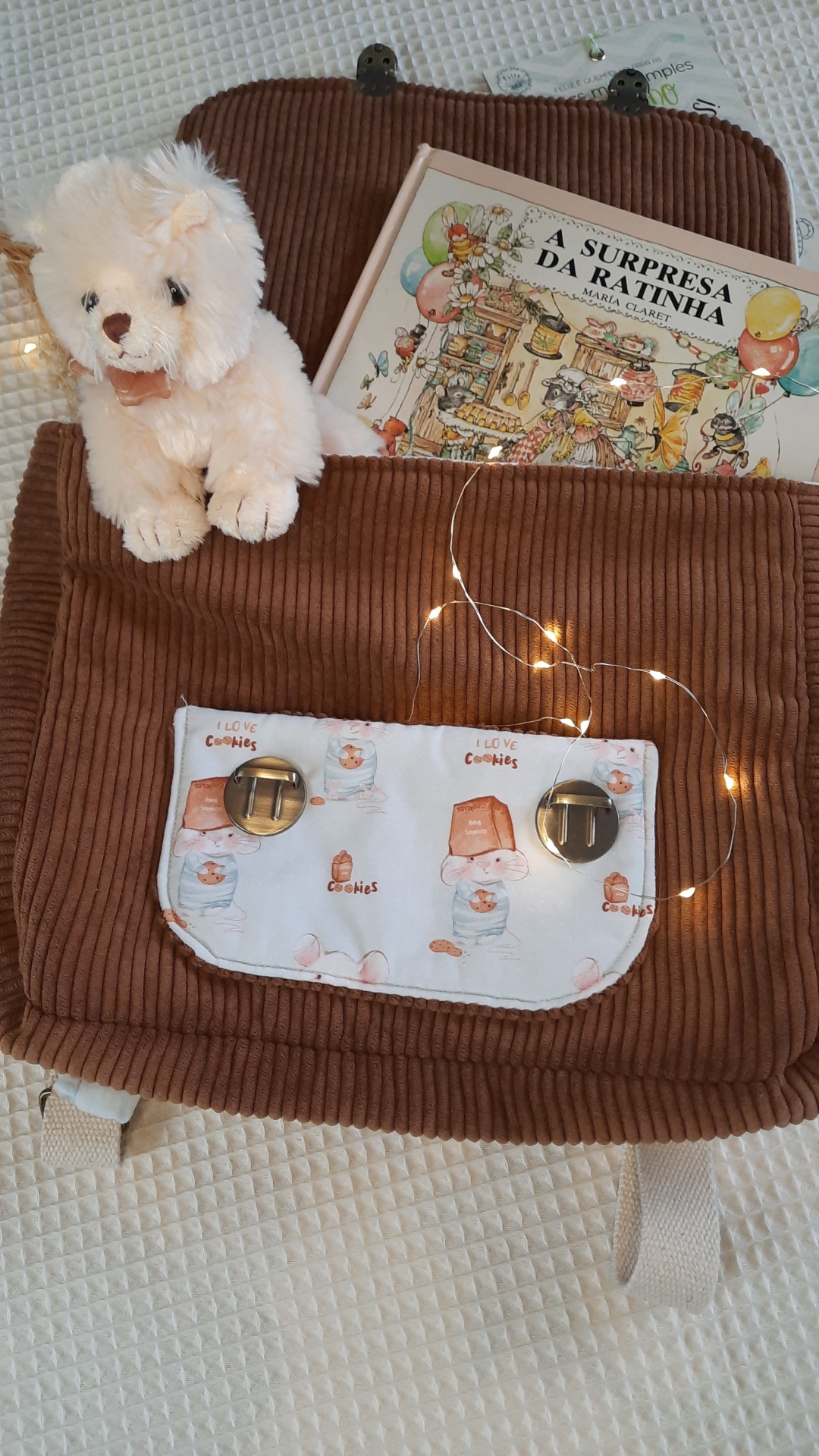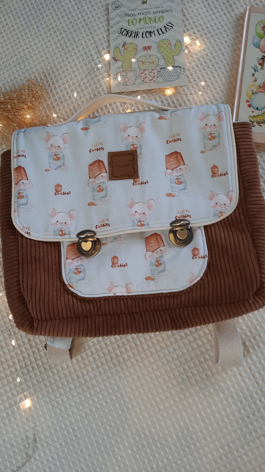Uma mochila encantadora para a criança levar o seu livro preferido, o boneco que que não pode faltar, a fralda que vai para todo o lado.