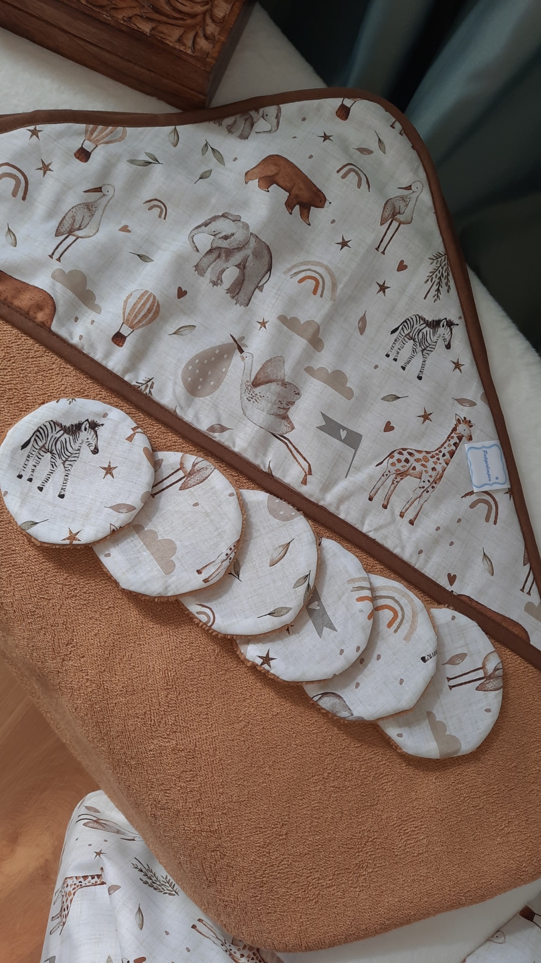 Um material muito suave e delicado para a pele do bebé, mesmo a mais sensível. Ao mesmo tempo muito absorvente e seca rapidamente.